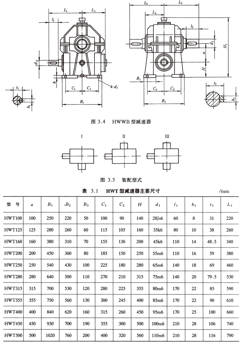 (1)HWT型—蜗杆在蜗轮之上铸造机体和机盖直廓环面蜗杆减速器;