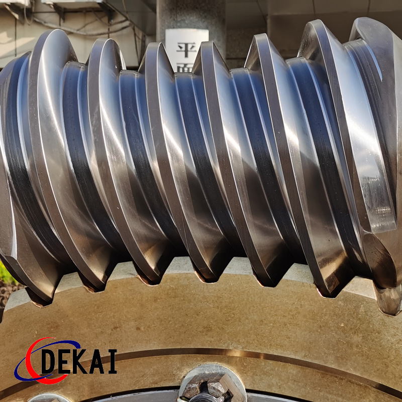 承载能力大:平面二次包络环面蜗杆能多齿同时进去啮合,增大了接触面积,减少了齿面压力,承受大的冲击载荷。蜗杆蜗轮的接触线是沿齿高方向上,并且齿面的啮合是在接触线上,具有很小的相对曲率,使接触应力减少。蜗杆和蜗轮在啮合中同时有两条接触线进入工作区域。这种增加啮合齿数一样,可提高承载能力磨削的蜗杆齿面,表面粗糙度Ra0.8。高质量的蜗杆几何尺寸和表面粗糙度,保证耐磨防止大负荷时油膜破坏。蜗杆的齿面是经过氮化热处理后精制而成,齿面硬度HRC≥58,高硬度的蜗杆在设计上保证有足够的刚性以致于他的弯曲和其它因素不影响上述啮合特性。