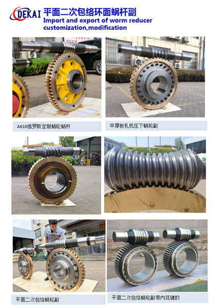 精密双导程蜗杆副的优点:分度精度高,侧隙可调整至0.01~0.03Mmm;齿面接触稳,不会改变中心距。调整标准,方便可靠。装配灵活,装配时,用调整环来获得合适的啮合侧隙。使用中如果因为磨损导致传动间隙增大,只要调整一下蜗杆的轴向位置,可以使蜗杆蜗轮传动副恢复到原来的精度,不需要更换新的蜗杆,蜗轮,比较实用。蜗杆材质采用40Cr,42CrMo、38CrMoAl合金钢。蜗杆采用锡青铜ZCuSn10Pb1离心浇铸,具有高强度耐磨性。