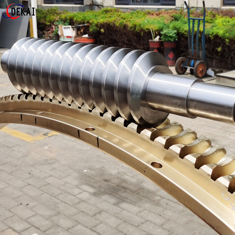 分度精度高,侧隙可调整至0.01~0.03Mmm;齿面接触稳,不会改变中心距。调整标准,方便可靠。装配灵活,装配时,用调整环来获得合适的啮合侧隙。使用中如果因为磨损导致传动间隙增大,只要调整一下蜗杆的轴向位置,可以使蜗杆蜗轮传动副恢复到原来的精度,不需要更换新的蜗杆,蜗轮,比较实用。蜗杆材质采用40Cr,42CrMo、38CrMoAl合金钢。蜗杆采用锡青铜ZCuSn10Pb1离心浇铸,具有高强度耐磨性。
