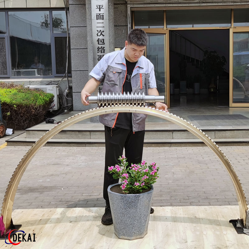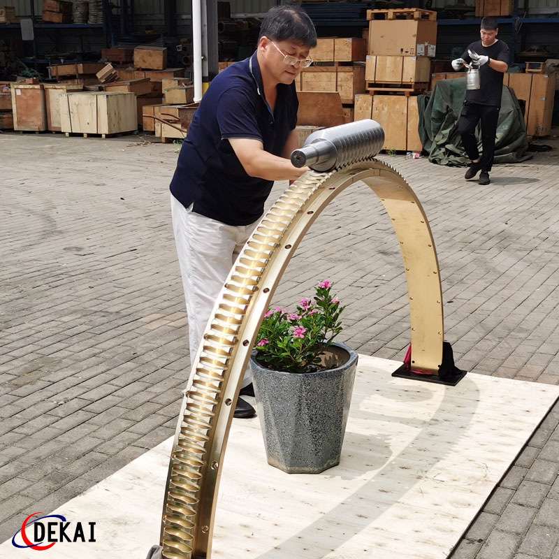 德州德凯减速传动机械有限公司采用双蜗杆对消隙原理开发生产的精密蜗轮蜗杆副,主要用于大型机床工作台的驱动,高精密分割器等无间隙圆周运动精确定位场合。该蜗轮副中心距最大可做到2000mm,单节速比可做到1-365同时不产生回程间隙。
